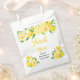 This beautiful and elegant baby shower thank you favor bag features watercolor citrus lemons and foliage. The text combines handwritten script and serif fonts for a stylish and modern look. This is perfect for a spring or summer rustic baby shower.