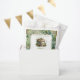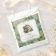 Admire la belleza de un diseño de inspiración vintage para su ducha de bebé con el conmovedor sentimiento 'Nuestro próximo capítulo empieza...'. Este encantador diseño de ilustracion cuenta con una colección cuidadosamente apilada de libros antiguos, sus espinas gastadas con la edad y delicadas hojas entremezcladas entre sí. Los libros se sitúan en un fondo blanco de rectángulo redondeado, enmarcado sutilmente por un fondo de hojas orgánicas y un papel imitación kraft envejecido, creando un ambiente nostálgico y rústico. Este diseño evoca una sensación de inoportunidad, perfecta para celebrar el comienzo de un nuevo capítulo en la vida.