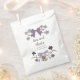 Mochila de bienvenida con el tema del arco de boho con el ilustracion de la cinta lila y las flores.