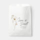 Bolsa de favor moderno boho que presenta "El amor es dulce" y delicadas flores silvestres en tonos suaves de rosa, amarillo, púrpura, marfil y verde. Personalice con los detalles de su lluvia de boda con la plantilla fácil de editar con una fuente de letra cursiva romántica y una fuente serif moderna.
