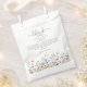 These sweet and simple bridal shower favor bags are perfect for any nature loving bride-to-be. The design features a beautiful field of hand painted watercolor wildflowers, adding a touch of color and whimsy. The template wording is fully customizable with your own thank you message, name and date, making each favor bag a truly unique keepsake from the special day. These favor bags are sure to impress your guests and set the tone for a beautiful and memorable bridal shower.