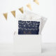 Mimete a tus invitados con este favor de boda moderno y simple. El fondo azul oscuro es el telón de fondo perfecto para las luces de cuerda que dan el efecto de brillar en la noche.