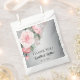 En la recepción, esta bonita bolsa plateada y rosa muy decorativa da a los clientes un gradiente metálico plateado muy lujoso, con un magnífico ramo rosa de rosas y rosas en la esquina superior. Todos los detalles se pueden personalizar fácilmente en el enlace Personalize anterior. Si desea ver más material para eventos y fiestas con este hermoso diseño, puede consultar la colección completa aquí: https://www.zazzle.com/collections/pink_roses_and_silver_wedding-119726558519085861