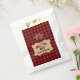Diseño de estilo rústico y de caza: una antigua forma de papel con marco punteado, un oso, un alce y dos eclosionadores, todo sobre una manta negra de búfalo roja como fondo. Utilice la herramienta Personalizar para agregar su información. Colección de Cumpleaños Red Buffalo Plaid/Lumberjack.