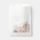 Una paleta de colores a la moda en tonos terra cotta, cobre y roya, marcos geométricos brillantes y elegantes diseños, son la base de esta excitante suite boda. Tanto si planea una boda de destino como si se aloja cerca de casa, este delicado conjunto de diseño de hojas de palma ofrece una atractiva elección. La bolsa de favores de coordinación mostrada aquí en un fondo blanco, proporciona una plantilla para añadir fácilmente un mensaje de 'agradecimiento', sus iniciales, nombres y fecha de boda. Buscar ID956 para ver otras piezas y opciones de color para este conjunto.