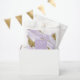 Este diseño a medida, con una tinta de alcohol abstracta en tonos de lavanda suave a violeta lila con acentos dorados brillantes, es perfecto para una boda romántica y elegante. La bolsa de favores coincidente que se muestra aquí proporciona una plantilla para añadir fácilmente sus propias iniciales, fecha de boda y mensaje de agradecimiento. Buscar ID990 para ver otras piezas en este conjunto de bodas coordinado.