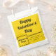 ¡Feliz Día de San Valentín! Una festividad encantadora para celebrar este mes de febrero y para anunciar también su negocio o promocionar su marca. Bolsa de papel con Feliz Día de San Valentín, tu nombre de negocio, logotipo, dirección y número de teléfono. Bolsa de papel para empaquetar los productos que venderá y para promocionar su marca o para promocionar su negocio a los clientes. Bolso de papel de personalizable que se puede usar para crear conciencia de marca. Los colores de diseño son textos negros sobre fondo amarillo y blanco. Compruebe la apariencia después de cargar el logotipo y escribir textos. Si la apariencia le resulta agradable, puede realizar su pedido ahora. Si necesita cambiar el tamaño y mover el logotipo y los textos para que encajen en la plantilla, cambie la herramienta de diseño. También puede cambiar el color de fuente, el estilo de fuente y el color del fondo de forma cuadrada en la herramienta de diseño. ¡Feliz Día de San Valentín! Te deseo más ventas esta fiesta.