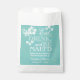 Un diseño de estilo tropical con flores de hibisco, flores de plumeria frangipani y un fondo azul verde azulado con un patrón de follaje tropical. El patrón es sutil sólo para agregar textura. El texto dice "Comer, beber y ser malauí". Personaliza estas bolsas de regalo para tu boda hawaiana o hawaiana en la playa. Son especialmente agradables si tienes un bufé de caramelos para los clientes como agradecimiento. Tengo este diseño disponible en una variedad de colores. Si no encuentras lo que buscas, solo envíame un mensaje.