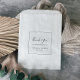 Estas minimalistas bolsas de favores de boda son perfectas para un simple boda. El moderno diseño romántico presenta una tipografía clásica en blanco y negro, acompañada de una caligrafía rústica y elegante con un estilo de letra a mano vintage. Personalizable de cualquier color. Mantenga el diseño simple y elegante, tal como está, o lo personaliza añadiendo sus propios gráficos y obras de arte. Personalice las bolsas de regalo con un mensaje de agradecimiento corto, sus nombres y la fecha. Estas bolsas de regalo se pueden utilizar para la recepción de una boda, la ducha de novia o cualquier evento o fiesta.