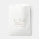 Esta moderna bolsa de moda dorada y blanca de amor y gracias a la boda es perfecta para una simple recepción nupcial. El diseño de boho neutro presenta una tipografía bohemia rústica única y elegante en un blanco y oro mínimo. Personaliza las bolsas de favores con tus nombres y la fecha de boda.