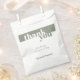 Celebra tu amor con estilo con nuestra moderna bolsa de favoritas de la boda blanca y verde sabia, diseñada para conmemorar tu día especial. Esta encantadora bolsa contiene el mensaje más sincero "Gracias por compartir nuestro día especial". Edite el mensaje personal y agregue sus nombres para crear su apariencia perfecta. Ya sea que esté lleno de dulces deliciosos o recuerdos preciados, esta bolsa de favores sirve como una muestra reflexiva de aprecio, y gratitud sentida en esta maravillosa ocasión.