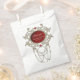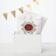 Momentos dorados de amor. El diseño desprende una elegancia oscura que llama la atención inmediatamente. Tiene un motivo circular central con un fondo rojo profundo que crea un ambiente apasionado y romántico. En el medio del círculo están las siluetas de una novia y un novio que adorablemente sostiene globos de corazón -un símbolo de amor y alegría. Dentro del círculo, el texto "Mr & Mrs." está estampado en una fuente elegante, celebrando la conexión de la pareja y la vida juntos. El círculo está enmarcado por delicados adornos dorados que le dan un toque de lujo al diseño. Estos detalles ornamentales atraen la atención y crean un aura opulento.