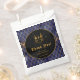 Esta elegante y moda fiesta de cumpleaños de agradecimiento bolso de favores presenta un falso dragón purpurina de oro en un fondo de escala de dragón azul marino. El texto combina tipos de letra decorativos y angustiados para un aspecto histórico y medieval. Los acentos purpurinas y los elementos de fantasía crean la perfecta combinación de inglés moderno y antiguo.