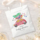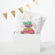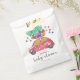 Un hermoso coche rojo con una acuarela y un estilo de lápiz lleva regalos y un árbol de Navidad. Celebra el gran día con el "coche árbol de Navidad". Ducha de invierno para bebé. Elementos coincidentes disponibles.