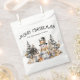 Agrega un toque festivo a tu celebración navideña con esta encantadora bolsa de regalos navideños que presenta un delicioso diseño de muñeco de nieve en acuarela. El muñeco de nieve, vestido con un clásico sombrero negro y bufanda dorada, se encuentra entre árboles festivos, acentos dorados y regalos envueltos en la parte inferior, lo que aporta un ambiente invernal caprichoso y acogedor a tus favores de fiesta.