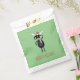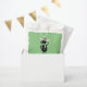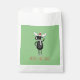 La mano moderna y caprichosa ilustra el alce de pie con sombrero de santa, bufanda y personalizable Feliz Navidad en fondo verde