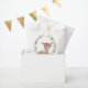 Adorable ilustracion navideño presenta ciervo molido en corona con personalizable "Feliz Navidad" texto