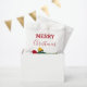 Un lindo ilustracion de Navidades reciclando un camión de basura usando un sombrero de Papá Noel y decorado con luces de Navidades con palabras "Feliz Navidad". Un Navidad ideal favorece las bolsas para los amantes de los camiones de basura grandes o pequeños, chicas o niños.