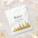 Black and Gold New York City NYC Skyline favorece, trata, goodie, bolsos de regalo de papel con texto personalizado de agradecimiento es perfecto para kits de bienvenida para invitados y regalos de fiesta nupcial, en una boda de destino en el centro de Manhattan en Nueva York o ducha de novia con temas de NYC. CONSEJO DE DISEÑO: HAGA CLIC EN "PERSONALIZAR MÁS ALLÁ" para cambiar todos los tipos de letra, posición del texto y color, o para seleccionar un nuevo color de fondo del bolso. Parte de una colección coordinada de Destinos de uva de papel disponible exclusivamente en Zazzle.