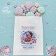 ¡Crea una ducha de bebé en la costa de ensueño! 🌊 Con una adorable bebé afroamericana 👶 pelo rizado y piel marrón brillante, durmiendo tranquilamente dentro de una concha dorada y blanca. Rodeado de suaves flores de color pastel, conchas marinas y suaves olas oceánicas en rosa, púrpura y azul, este diseño añade elegancia y dulzura a cualquier celebración. Perfecto para las duchas de bebés costeras, de sirena o submarinas. Personalizable completo con el nombre del bebé y el texto personal - ideal para la ducha de bebé o para los favores y keepsakes de la primera fiesta de cumpleaños.