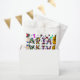 La fiesta de cumpleaños favorece las bolsas con flores moradas, rosas, rojas, azules y verde azuladas y símbolos musicales como guitarra y notas musicales.