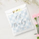 Este sencillo pero elegante bolso de favores para la ducha para bebés presenta un fondo de gingham azul dulce con un elegante saludo de caligrafía que dice "Oh Baby". Los elementos de coordinación están disponibles en la colección.