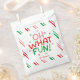 Add a cheerful touch to your next holiday gathering with the Oh What Fun Christmas Favor Bag. Featuring bold holiday typography set on a white square with coordinating diagonal stripes in the background, this design brings a bright twist to your Christmas celebrations. There is a spot to personalize with the host's, family or event name, making it perfect for Christmas parties, cookie exchanges, classroom gifts and more.