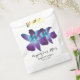 Bolsos personalizados de boda personalizados con orquídeas Dendrobium azul morado y turquesa. Diseño simple de bolsos de favoritas de boda que presenta una hermosa variedad de orquídeas llamada dendrobio azul. Es de color verde azulado/turquesa y violeta y púrpura real. Una gran variedad de flores para el pavo real con el tema de la ducha de novia. Puedes personalizar los nombres de la novia y del novio y la fecha del boda. Póngase en contacto con el diseñador si desea que otros elementos que coincidan con este diseño no estén incluidos en la colección.