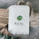 Estas palmeras tropicales salvajes gracias a las bolsas de favores de boda son perfectas para una boda en la playa o destino. El diseño presenta una exótica variedad de hojas de plátano de palmera de color agua verde, helechos, follaje, plantas botánicas y vegetación para un ambiente tropical de verano. Personalice las bolsas de regalo con un mensaje de agradecimiento corto, sus nombres y la fecha. Estas bolsas de regalo se pueden utilizar para la recepción de una boda, la ducha de novia o cualquier evento o fiesta.