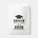 Las modernas bolsas de favoritas de los partidos de graduación cuentan con una tapa de grado con un diseño de tipografía simple y negro que se puede personalizar con el nombre del graduado y la escuela. El texto negro se puede personalizar para que coincida con los colores de la escuela o del tema fiesta.