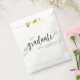Una elegante y moderna bolsa de favoritas para la graduación. Estas bolsitas de agradecimiento a tu partido presentan un sencillo tema en blanco y negro con un elegante tipo de letra de guión. Añada el nombre de los graduados y el de la escuela secundaria o universidad para la bolsa de favores de la fiesta de graduación personalizada.