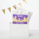 Bonito trozo de pastel de vainilla a la personalizado con chocolate, morado y rosa y personalizable de texto para la deliciosa fiesta de cumpleaños de tus hijos. ¡Dulce diversión!