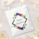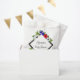 El diseño presenta flores de anémona pandas, blancas y azules patrióticas con eucalipto verde sobre un marco de color gris carbón.