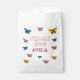 Patrón de mariposa rosa lindo Gracias Bolsa de Favor de Cumpleaños. ¡Gracias a tu invitado de cumpleaños con esta bolsa de cumpleaños con temática mariposa perfecta para una fiesta de cumpleaños de chicas! Con mariposas coloridas, este diseño le da un toque mágico a cualquier celebración. ¡personalizar con el nombre de su hijo y haz que su día sea inolvidable!