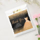 A beautiful peach orange themed elegant watercolor dress gown on a black background with faux glitter at the top and bottom of the favor bag.
