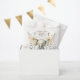 Pequeño y dulce tema de cacahuete acuarela elefante encantadora ilustracion de ducha bebé bolsos de favores. Imagina una delicada carta adornada con suaves pinceladas de acuarela, mostrando un elefante encantador en su centro. Esta adorable criatura está rodeada con cariño por una variedad de flores y follaje exuberante, creando una escena caprichosa e invitante. El tipo es multicolor y escogido para un toque caprichoso creando un ritmo entre tipo e imagen y colores pastel suaves en las imágenes y la tipografía. Perfecto para una celebración de primavera o verano de la ducha de bebé.