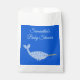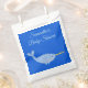 Este impresionante paquete de 50 bolsos de favores presenta una imagen de arte digital de un lindo bebé azul mágico Narwhal. El cuerpo principal del Narwhal tiene una textura áspera y es azul, mientras que el vientre es de color azul gris. El Narwhal tiene un ojo morado con un alumno blanco y un cuerno dorado brillante en la cara. También tiene una cola delicada y aletas. Hay texto personalizado para que puedas incluir el nombre de la Madre a Ser.