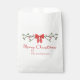 Delicia a tus huéspedes esta temporada navideña con una bolsa personalizada de favores de Feliz Navidad. Con un arco rojo festivo y una delicada vegetación, esta encantadora bolsa de bienvenida es perfecta para recibir dulces de vacaciones, pequeños regalos o favores de fiesta. Añada un nombre de familia personalizado para un toque especial que haga que sus reuniones de Navidades se sientan cálidas y memorables. Ideal para fiestas de vacaciones, reuniones familiares, o como cuidadoso empaque de regalo, esta bolsa de favores aporta un toque festivo y personal a cualquier ocasión. ¡Hagan que sus celebraciones de vacaciones sean inolvidables con estas valiosas bolsas de personalizable!