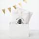 Una bolsa personalizada de favores "hechos con amor" que incluye una linda casa con un corazón y las palabras, hecha con amor en una bolsa de favores. Personalízalo añadiendo tu propio nombre. Un toque de bonito para todos tus regalos caseros. Especialmente divertido para un Navidad que trata una bolsa. Diseñado para ti por Blackberry Boulevard.