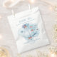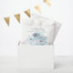 Personalizado de ballena bebé ducha invitado gracias a favor de bolsas de papel. Diseño lindo en azul y blanco, totalmente editable con un mensaje (gracias por mostrar el amor al bebé en el ejemplo), el nombre de la futura madre y la fecha del fiesta.