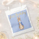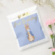 Peter el Conejo soplando un chicle azul en un fondo azul con "Primer cumpleaños" de oro