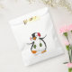 Un lindo ilustracion invernal: un pingüino con guantes y abalorios de buen humor camina por la nieve.