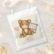 Gracias a tus amigos y familiares por venir a tu ducha de bebé con estos bolsos de bienvenida con el tema "Podemos esperar". Estos adorables bolsos de favores incluyen un lindo oso de peluche relleno con un agradecimiento por la señal que viene. Esta bolsa de favores se puede personalizar fácilmente con la inclusión del nombre y fecha de la futura madre. Si lo deseas, puedes sustituir las palabras "baby ducha" por tu propio texto. A tus invitados les encantarán estas bolsas de favores y el toque personal que ofrecen.