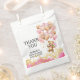 Envíe a sus invitados a casa con un dulce agradecimiento usando esta adorable bolsa de favores con la temática "We Can Bearly Wait". Con un encantador oso de peluche acuarela, elegantes acentos abstractos de oro y azul real, y juguetones globos azul y marrón dorado, estas bolsas son la mezcla perfecta de adorable y elegante, ideal para envolver dulces, pequeños regalos o favores de fiesta. Ya sea que los estés llenando con caramelos, velas o pasteles, estas bolsas de favores ayudan a unir el tema de tu ducha de bebé con un estilo reflexivo.