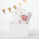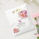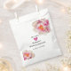 peonías florales rosadas escarlatas brillantes en las esquinas - para tus bolsos de favores - nombre y fecha boda añadida