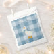 Send your guests home with a favor that looks as considered as the celebration itself. This powder blue gingham favor bag features a single bow-tied goose with "The Nest is Growing" in the same script as the invitation suite — charming, cohesive, and ready to fill with treats, small gifts, or keepsakes. The muted blue and white buffalo check linen pattern ties seamlessly into the full collection. Pairs with the matching favor tags, napkins, plates, coasters, invitation, and welcome sign for a completely coordinated baby shower from start to finish.