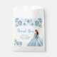 Este dulce bolso de agradecimiento de dieciséis años presenta una hermosa princesa en un vestido de bolas azules con arreglos florales. Es perfecto para una dulce fiesta de 16 años.