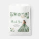Esta bolsa de favores para sweet sixteen presenta a una hermosa princesa con un vestido de gala verde salvia con arreglos florales. Es perfecta para una fiesta de cumpleaños sweet sixteen.