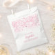Una bolsa de regalo para un cumpleaños glamuroso y glamuroso de 21 años (o cualquier edad). Un fondo blanco de moda con purpurinas falsos rosados, puntos. Personaliza y agrega una fecha, nombre y edad 21. El texto: El nombre está escrito en rosa con una escritura de estilo con letras a mano moderna.