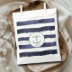 Rayas azules elegantes, modernas, marítimas y específicas del cliente, diseño de ancla. Personalízalo con tu nombre y fecha de boda.